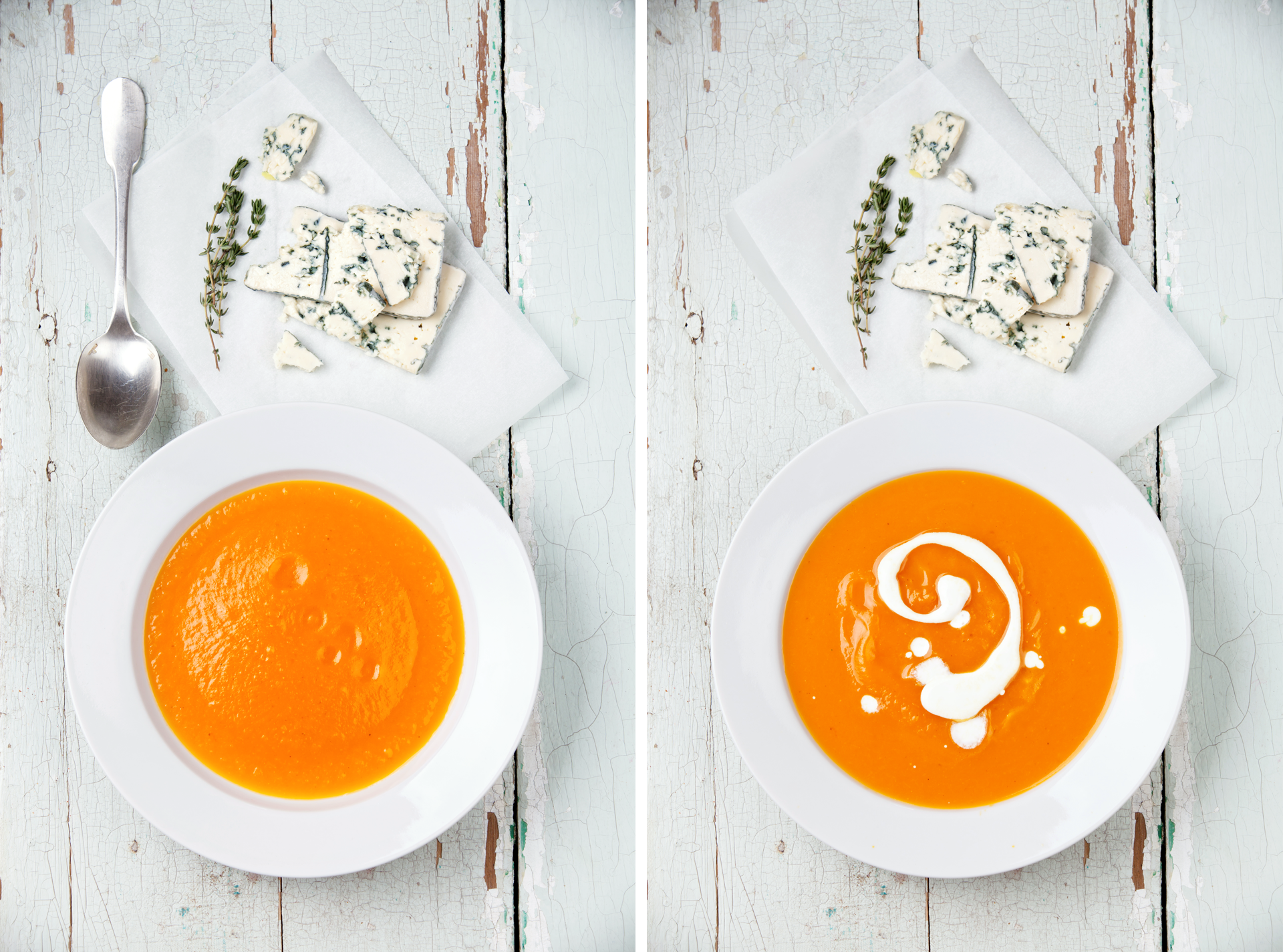 Die würzige Kürbissuppe eignet sich super an kalten Herbsttagen. Die orange Suppe zaubert Euch im Nu ein Lächeln auf die Lippen. Am Liebsten kombiniere ich sie mit Käse, Kräutern und allen möglichen Gewürzen. Was am Besten passt ist frischer Salbei und getrockneter Thymian. Als Garnitur dürfen geröstete Kürbiskerne natürlich nicht fehlen.